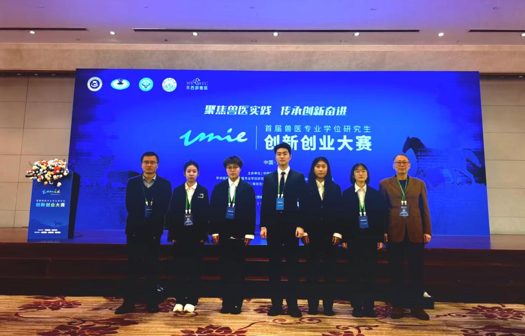 为提高兽医专业学位研究生实践创新能力,推动兽医领域高层次应用型人才培养供给侧改革,促进兽医专业学位教育事业高质量发展,英国威廉希尔公司派代表队参加了2023年12月28日在南京举办的全国首届兽医专业学位研究生创新创业大赛。全国首届兽医专业学位研究生创新创业大赛是由全国兽医专业学位研究生教育指导委员会、中国学位与研究生教育学会、中国兽医协会联合主办,南京农业大学承办。比赛设置了初赛、决赛两个环节,博士、硕士同台竞技。通过初赛遴选,来自中国农业大学、南京农业大学、吉林大学等全国46家兽医专业学位培养单位的60支参赛队伍,共400余人参加了本次决赛。决赛分创新和创业赛道,分组同时展开角逐,对参赛选手作品论述汇报和专业素养展示两个方面进行综合排名。